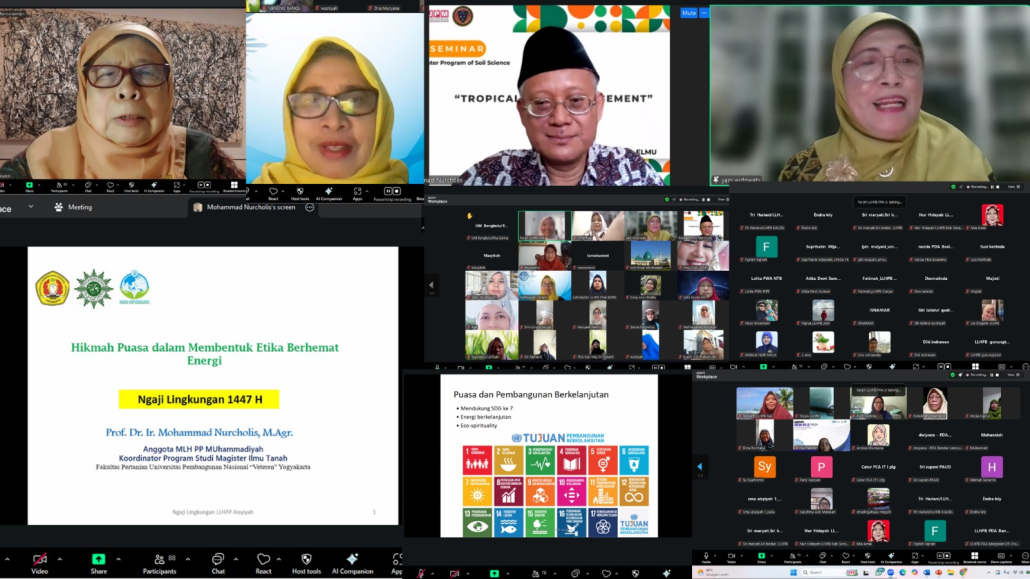 JAKARTA – Menjelang Ramadan, Lembaga Lingkungan Hidup dan Penanggulangan Bencana (LLHPB) Pimpinan Pusat ‘Aisyiyah menggelar Ngaji Lingkungan bertema Puasa sebagai Etika Pengendalian Konsumsi Energi pada Sabtu, 1(14/2/26) secara daring. Kegiatan ini menegaskan bahwa Ramadan bukan hanya momentum spiritual, tetapi juga kesempatan membangun kesadaran ekologis melalui pengendalian konsumsi dan penggunaan energi secara bijak.