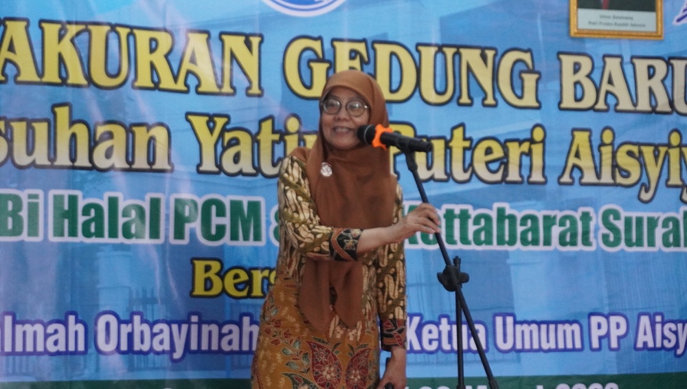 Surakarta – Ketua Umum Pimpinan Pusat ‘Aisyiyah, Salmah Orbayinah menegaskan bahwa amal usaha ‘Aisyiyah harus terus dihadirkan sebagai wujud nyata dari iman dan keberpihakan kepada masyarakat, khususnya kelompok rentan. Hal tersebut disampaikan dalam kegiatan Tasyakuran dan Halal Bihalal Panti Asuhan Yatim Putri ‘Aisyiyah Kota Barat Surakarta yang dirangkaikan dengan serah terima pembangunan panti pada Sabtu (28/3/26).