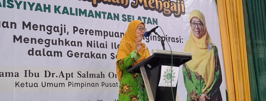 BANJARMASIN – “Dakwah tidak cukup hanya sosial, tapi harus punya kekuatan spiritual yang memberi dampak nyata.” Hal tersebut disampaikan Ketua Umum Pimpinan Pusat ‘Aisyiyah, Salmah Orbayinah saat menghadiri Gerakan Perempuan Mengaji di Masjid Al-Jihad, Kalimantan Selatan pada Ahad (29/3/2026).